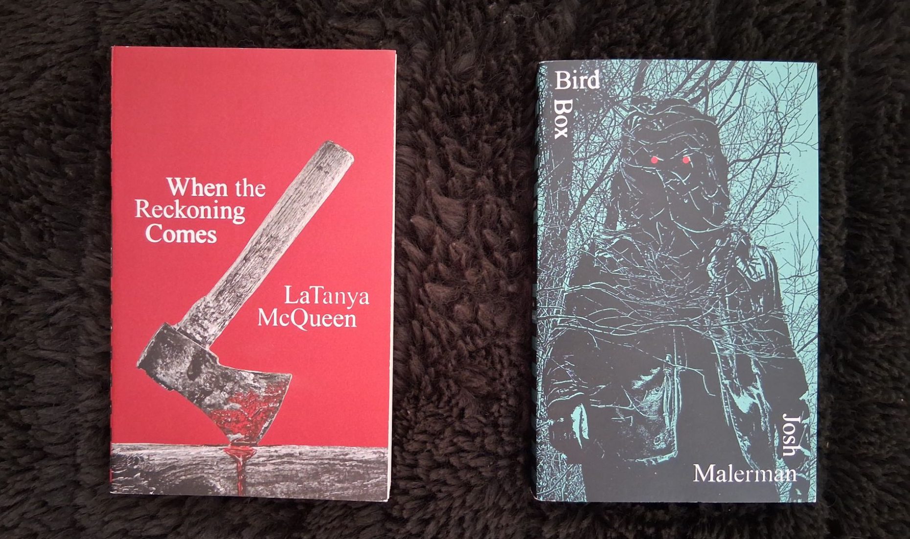 This pair of “Olive editions” I picked up while on a trip out of town with my friends. We were on an altogether more serious errand, but on the way back decided to stop at a mall to check things out and experience some levity. I’m quite fond of the cover art on these limited edition books, the first I ever picked up being The Thief of Always by Clive Barker. When the Reckoning Comes by LaTanya McQueen especially stood out to me as a striking cover, and it also served as a read for Black History Month, as the topic of last month’s book discussion at the library was Celebrating Black Authors and I was incidentally lacking in any relevant authors from the recent books I’d read. At the same time I decided to pick up Bird Box by Josh Malerman as well because I simply love the cover and I’ve been meaning to read Malerman’s work for a while now. This book wouldn’t have been my first choice, but a great cover won the day for it in the end (the affordability of these editions certainly helped too).